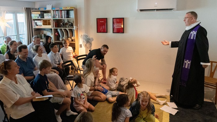 Denne gudstjeneste er også indvielse af kirkens nye døbefond fremstillet af den thailandske keramiker Nino Sarabutra Læs mere om hende her: https://www.danishchurch.in.th/b/indvielse-af-nyt-altersaet-til-kirken-201193