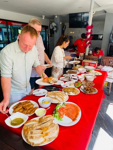 Senere på dagen kunne man deltage i en traditionel dansk julefrokost ved langbordet på restaurant “Danskeren” Siam Food Club. Her blev der disket op men alle de kendte juleretter. Tak til ejer Brian Sjeem for samarbejdet.
