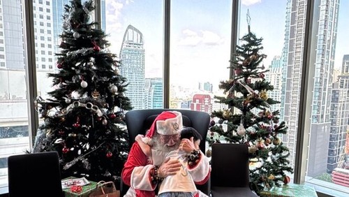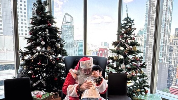 Vi er stolte af at kunne præsentere vinderen af årets fotokonkurrence! Anuyut Tanapakuls billede af hans 4 årige søn der møder julemanden udstråler varme og nærhed og har fanget stemningen på julebasaren på en fremragende måde. Samtidig ses Bangkoks skyline i baggrunden.
